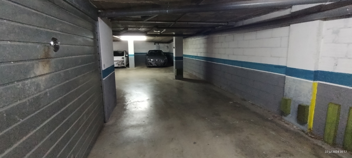 Esta situado en una planta baja de un parquing comunitario de un edificio cerca del centro de la ciudad.