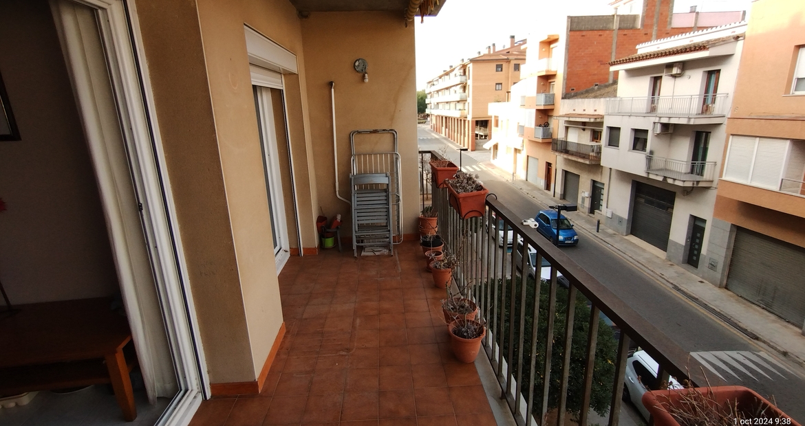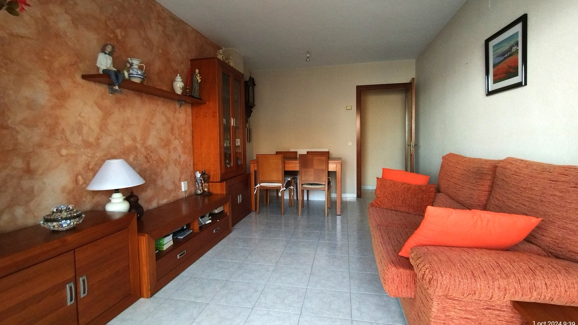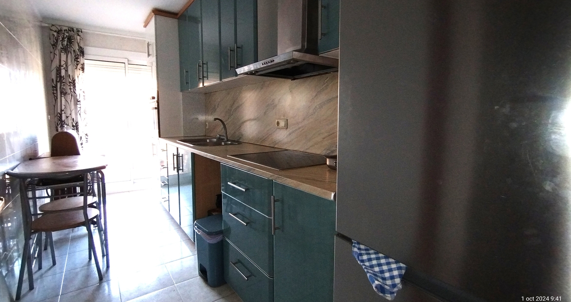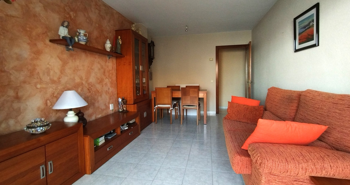 Piso distribuido en recibidor, comedor con salida a un amplio balcón exterior, cocina que también comunica al mismo balcón, habitación individual con salida a la zona de lavado, habitación doble tipo suite con baño adaptado, un baño completo y una habitación doble.