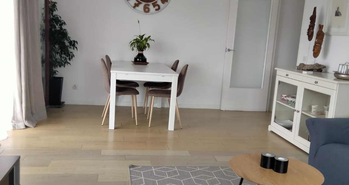 El piso esta totalmente amueblado con todo lo necesario para empezar a vivir. Con conexión de wifi, suministro de agua y electricidad dados de alta.