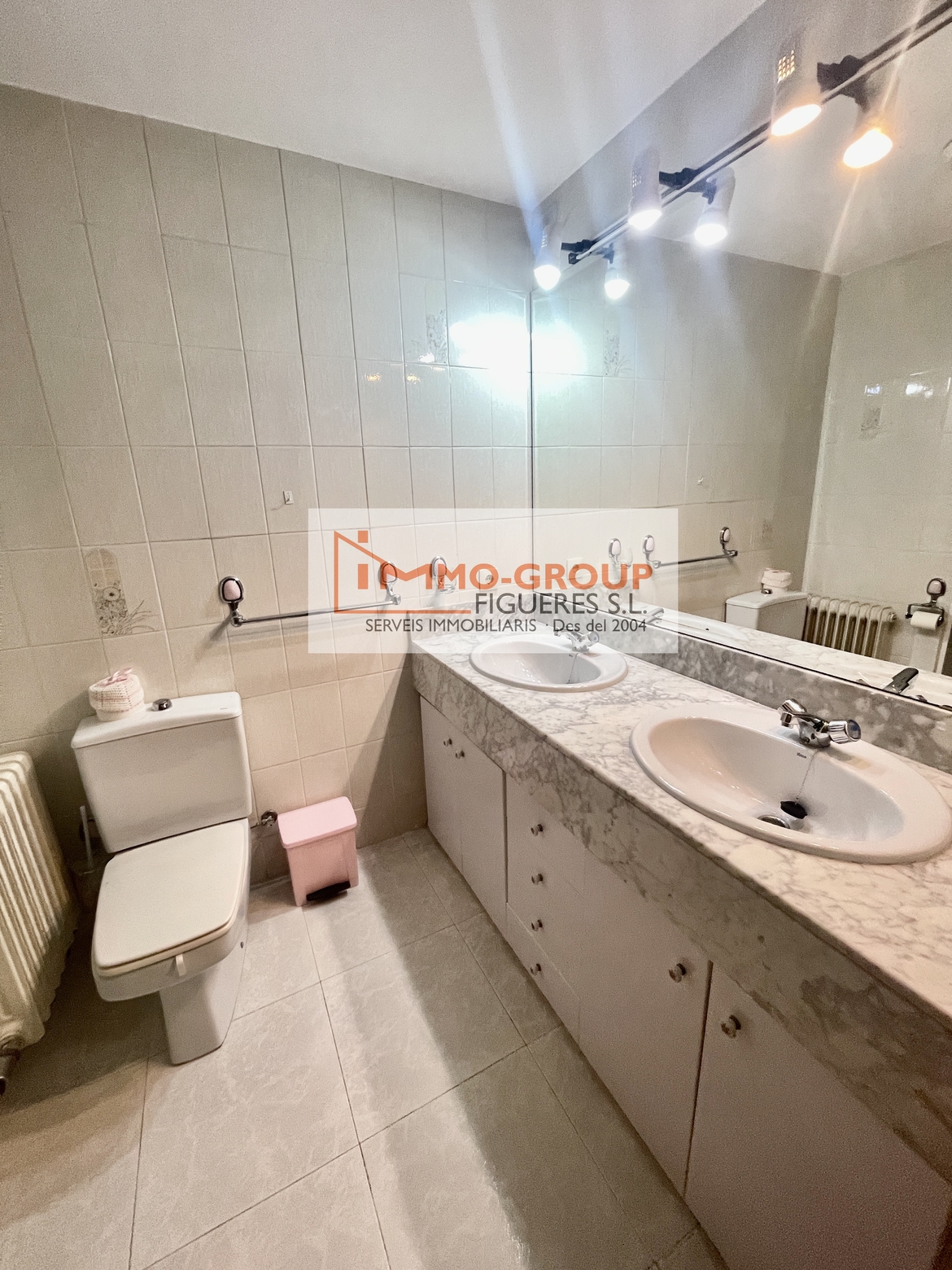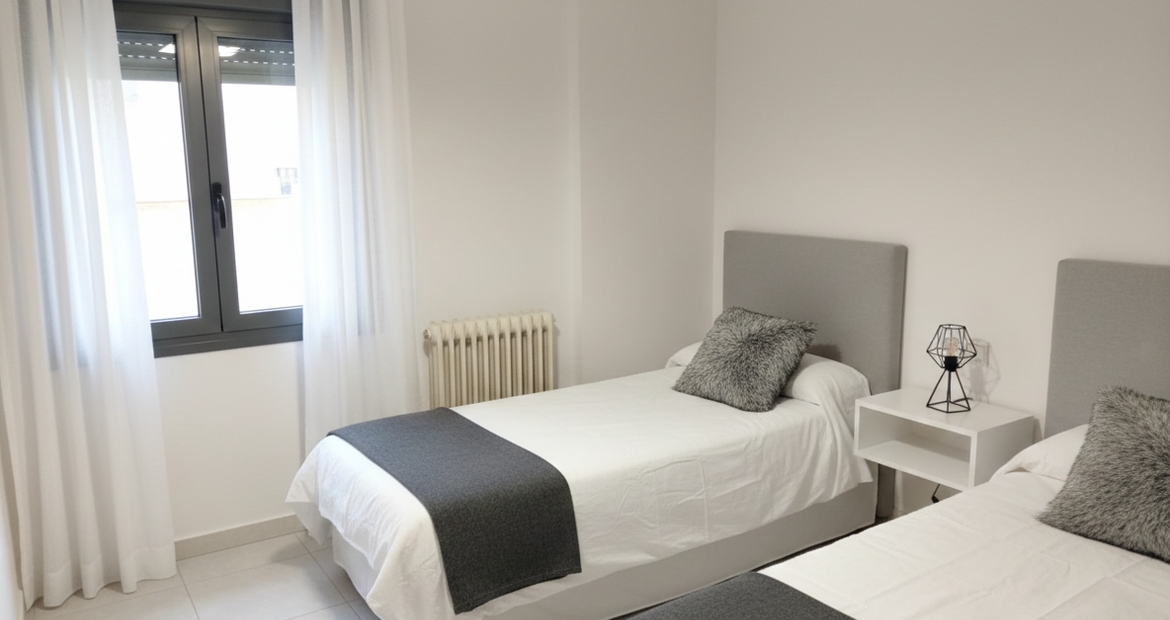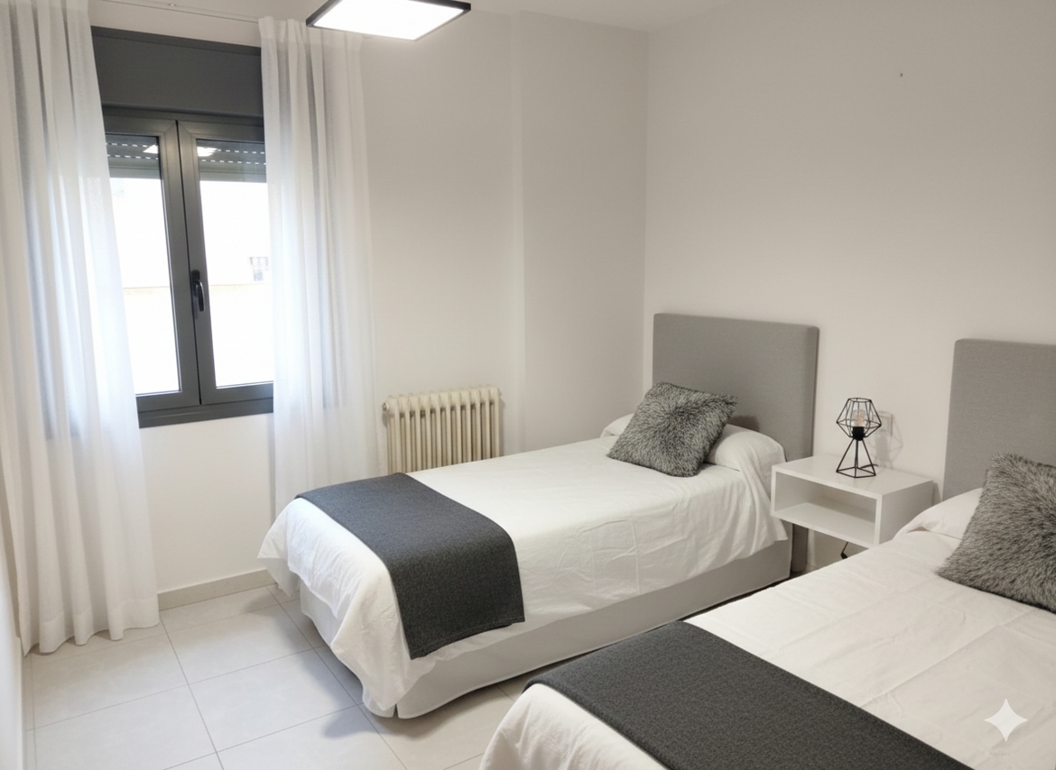El piso cuenta con tres dormitorios versátiles. Uno de ellos, por su ubicación y tamaño, es ideal para convertirse en ese despacho o salita de lectura que siempre has querido. Dispone de dos baños completos para evitar esperas: uno equipado con plato de ducha y un baño doble de gran tamaño con bañera.